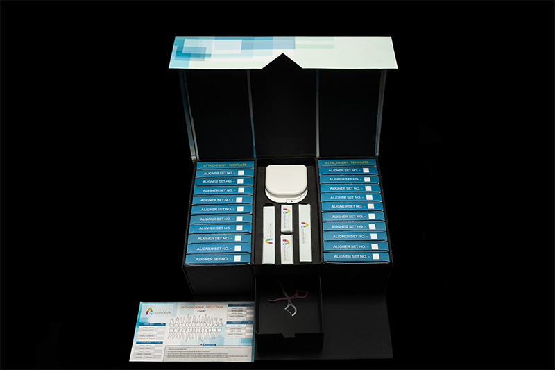 Each set of aligner is packed into its assigned individual box having aligner set number, patient’s name & doctor’s name on it.